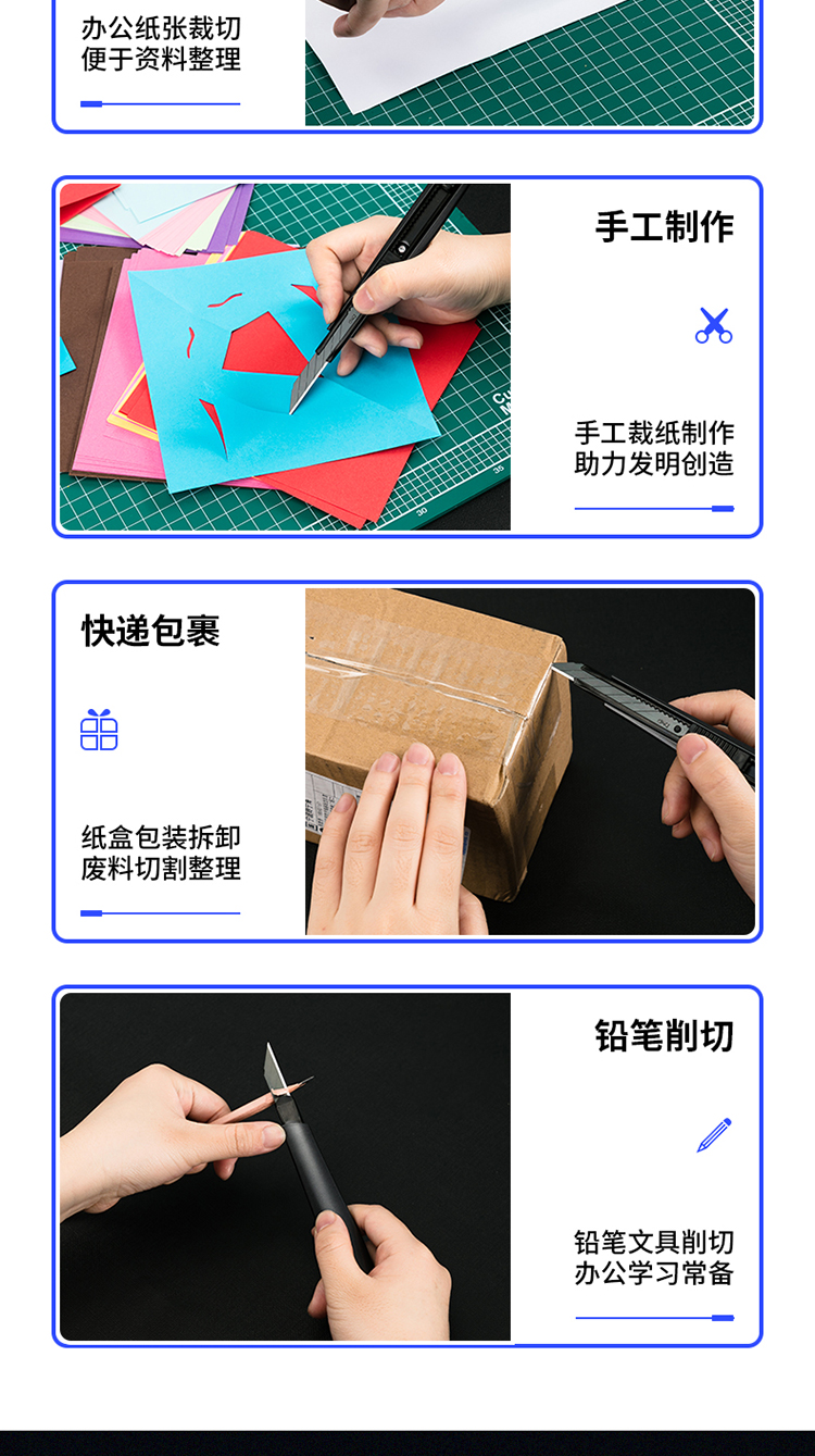 商品名稱:得力2037S 小號美工刀 30°黑刀刃鋅合金裁紙刀/壁紙刀 單位:把