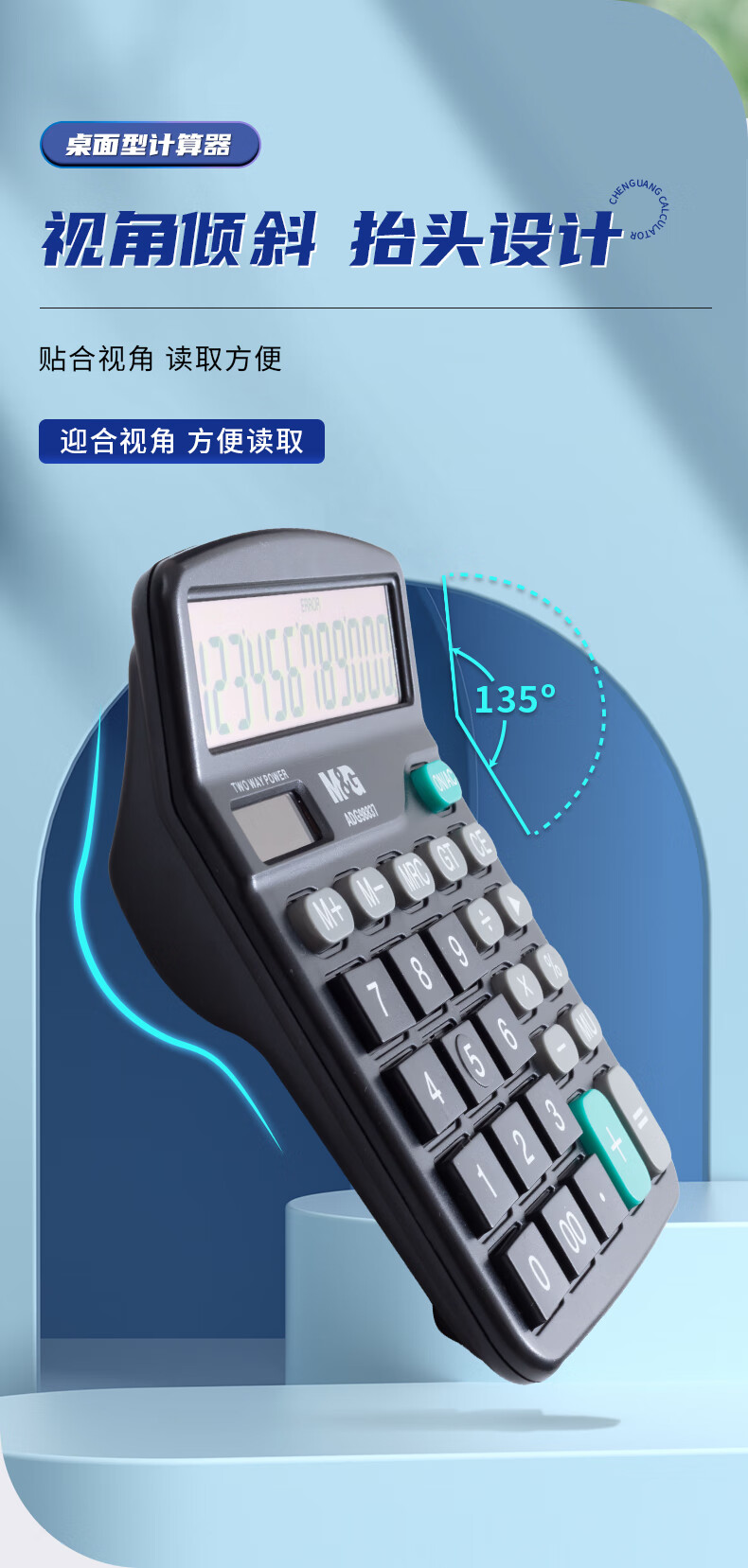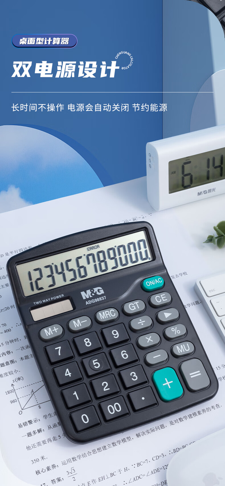 商品名稱:晨光ADG98837 計算器 12位大屏幕雙電源太陽能桌面計算機 辦公用品 單個裝