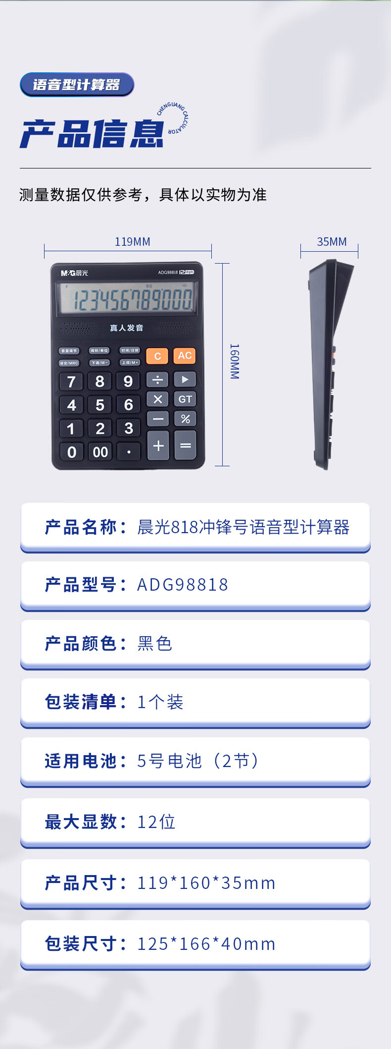 商品名稱:晨光ADG98818 語音型計(jì)算器 818沖鋒號(hào)計(jì)算機(jī) 黑色單個(gè)裝