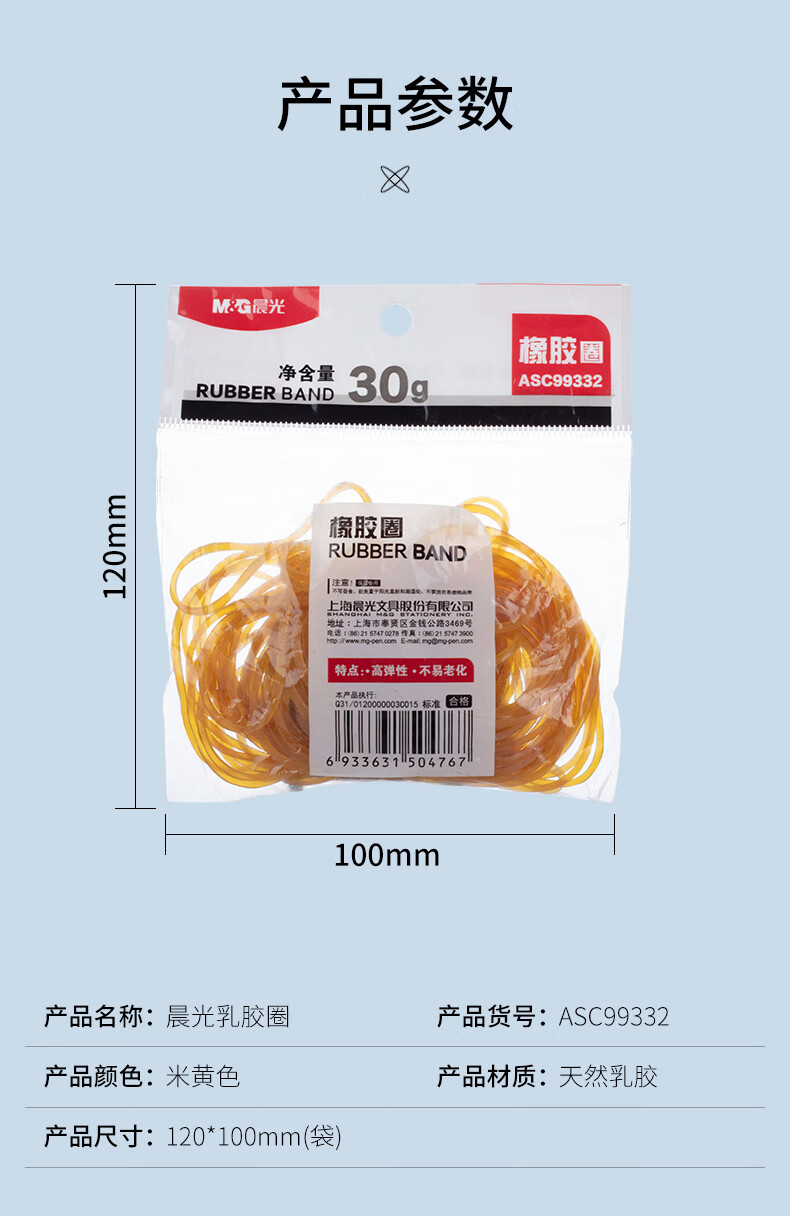 商品名稱:晨光ASC99332 乳膠圈 橡膠圈牛皮筋 30g高彈力橡皮筋 財務(wù)用品 單位:包