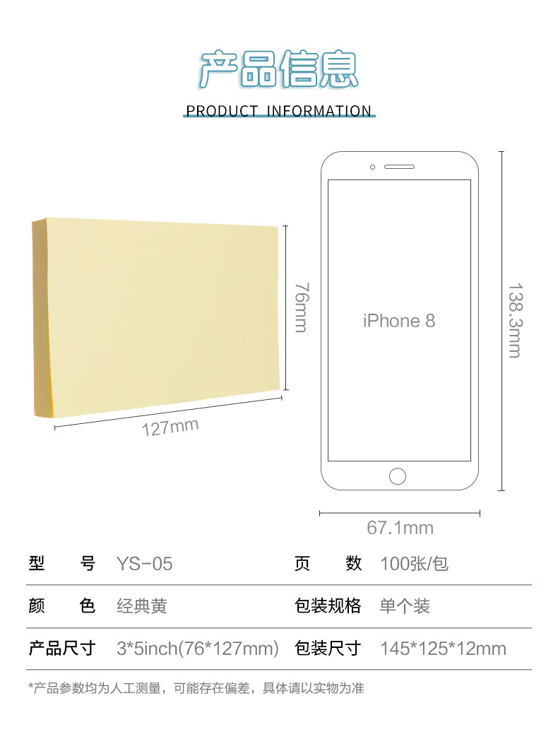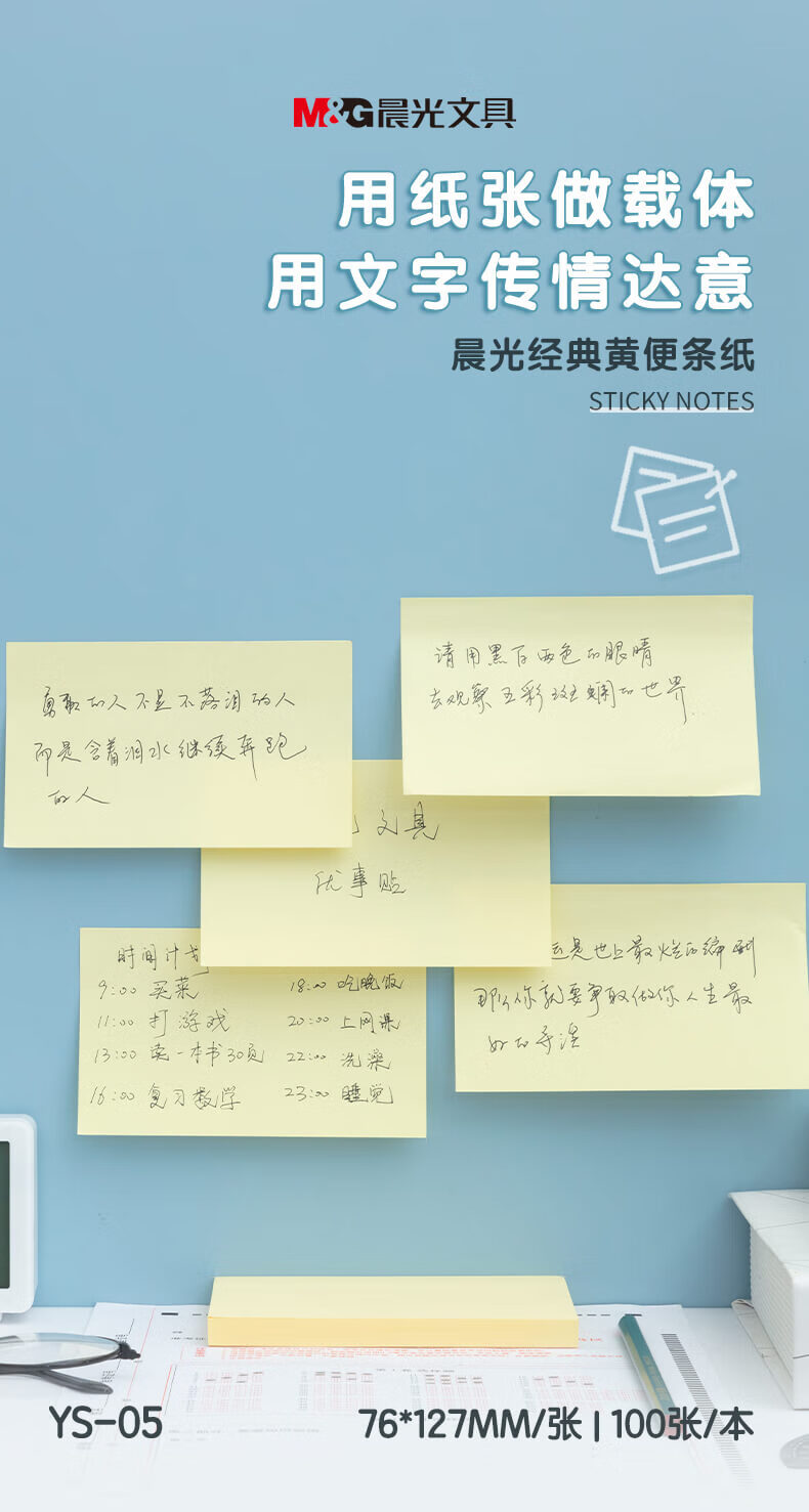 商品名稱:晨光YS-05 便利貼 100張粘性便簽紙留言貼 76*127mm記事貼優(yōu)事貼 單本裝