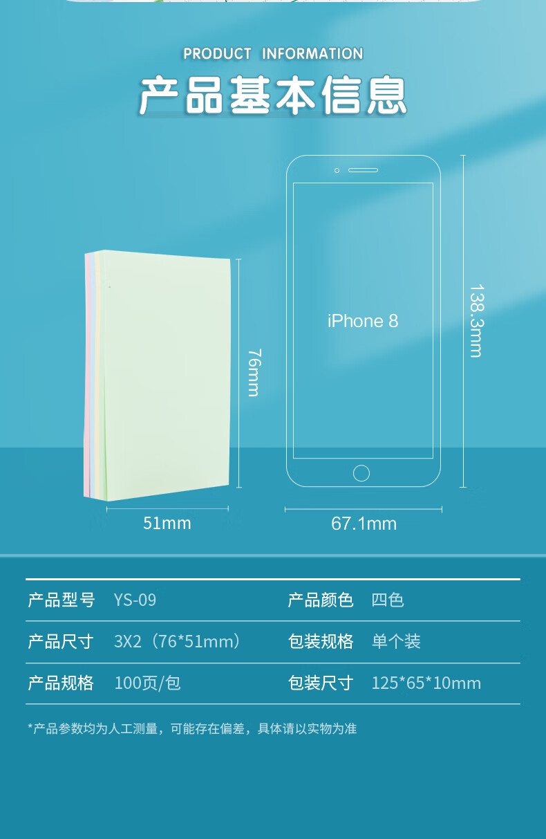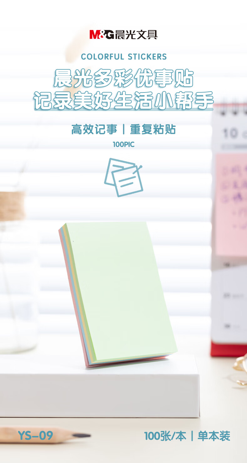 商品名稱:晨光YS-09 便利貼 100張粘性便簽紙留言貼 76*51mm記事貼優(yōu)事貼 單本裝