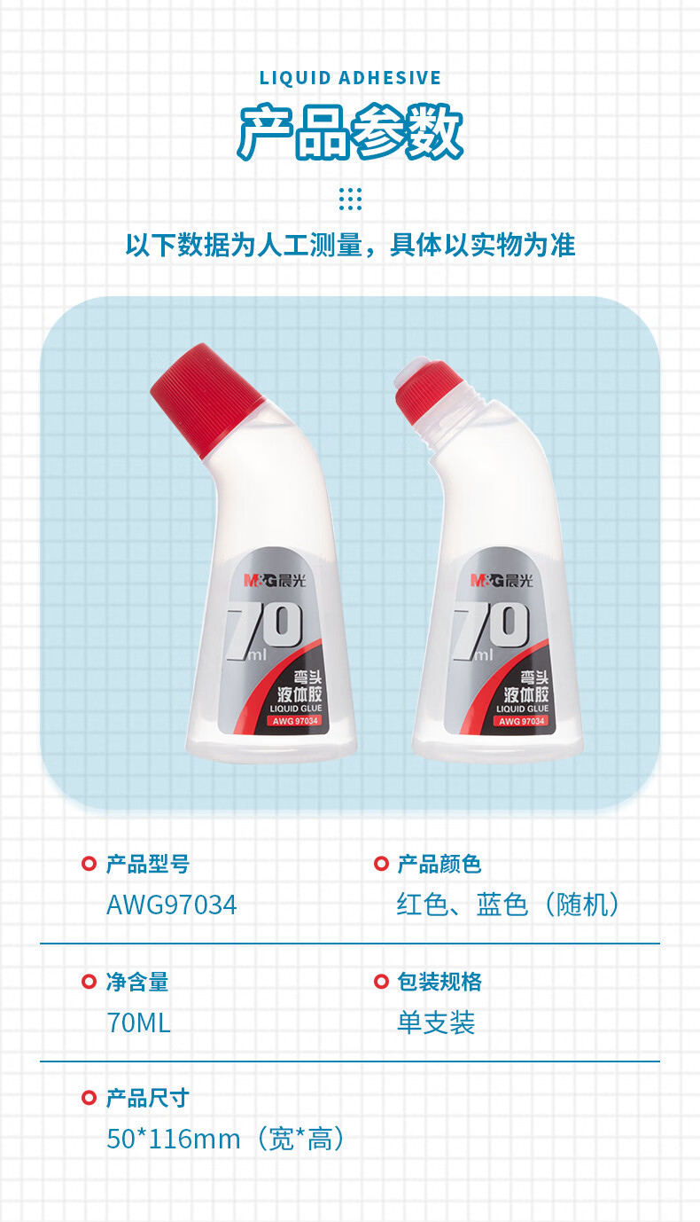 商品名稱:晨光AWG97034 彎頭液體膠水 70ml高粘度手工黏膠 單個(gè)裝 顏色隨機(jī)