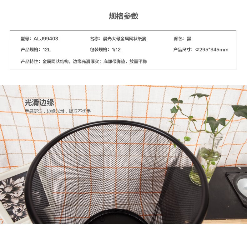 商品名稱:晨光ALJ99403 大號(hào)金屬網(wǎng)狀垃圾桶 辦公垃圾分類紙簍 穩(wěn)固型垃圾簍 單個(gè)裝