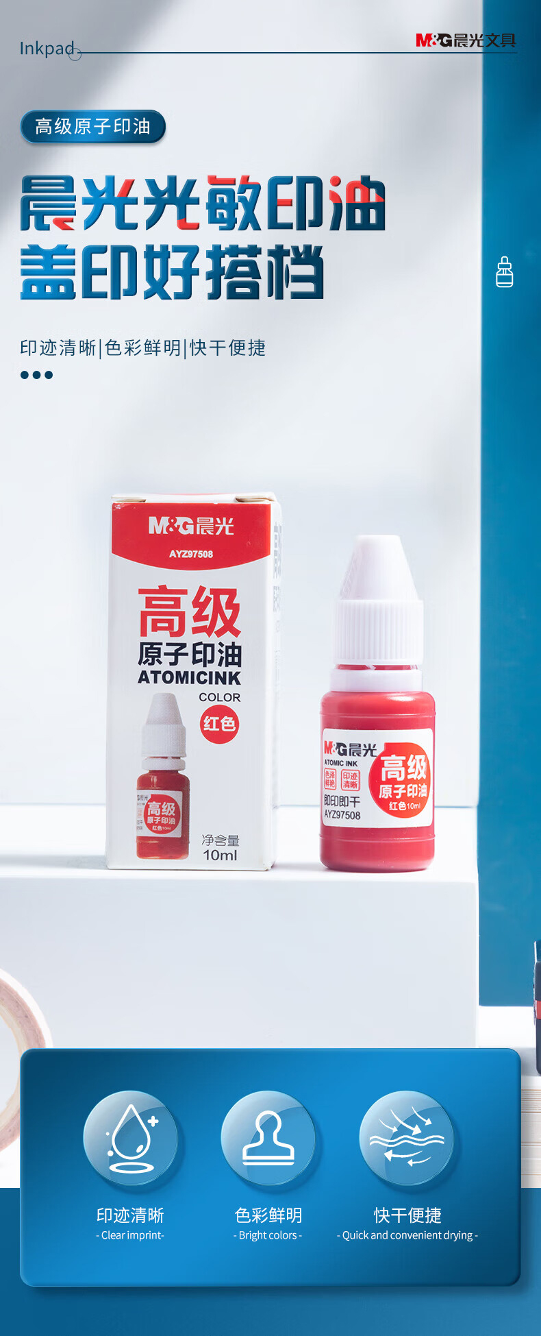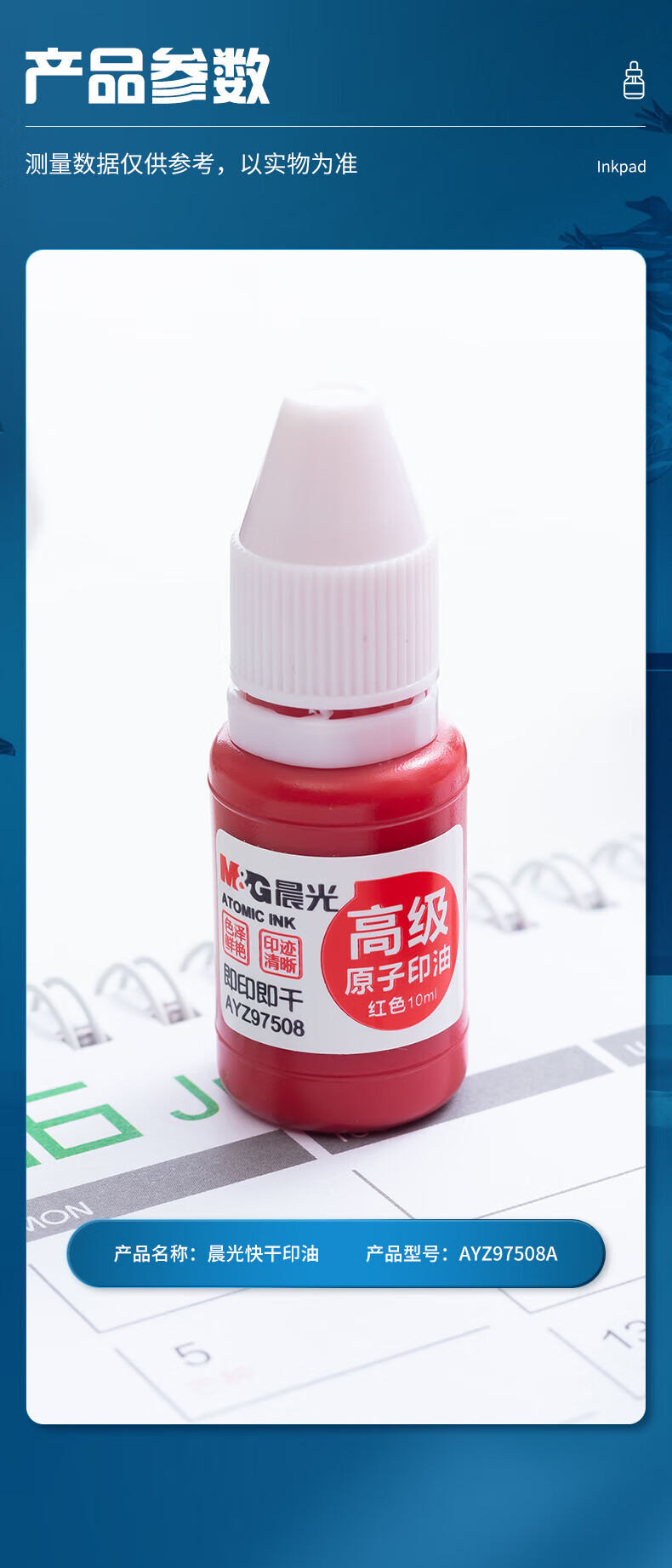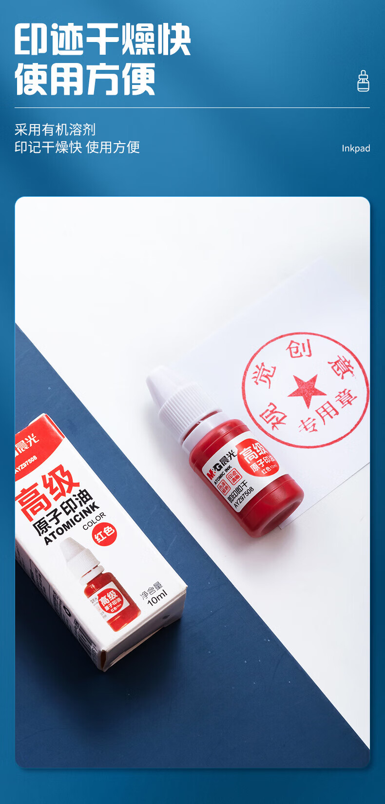 商品名稱:晨光AYZ97508A 原子印油 10ml財(cái)務(wù)紅色印章印臺(tái)專用印油 單瓶裝