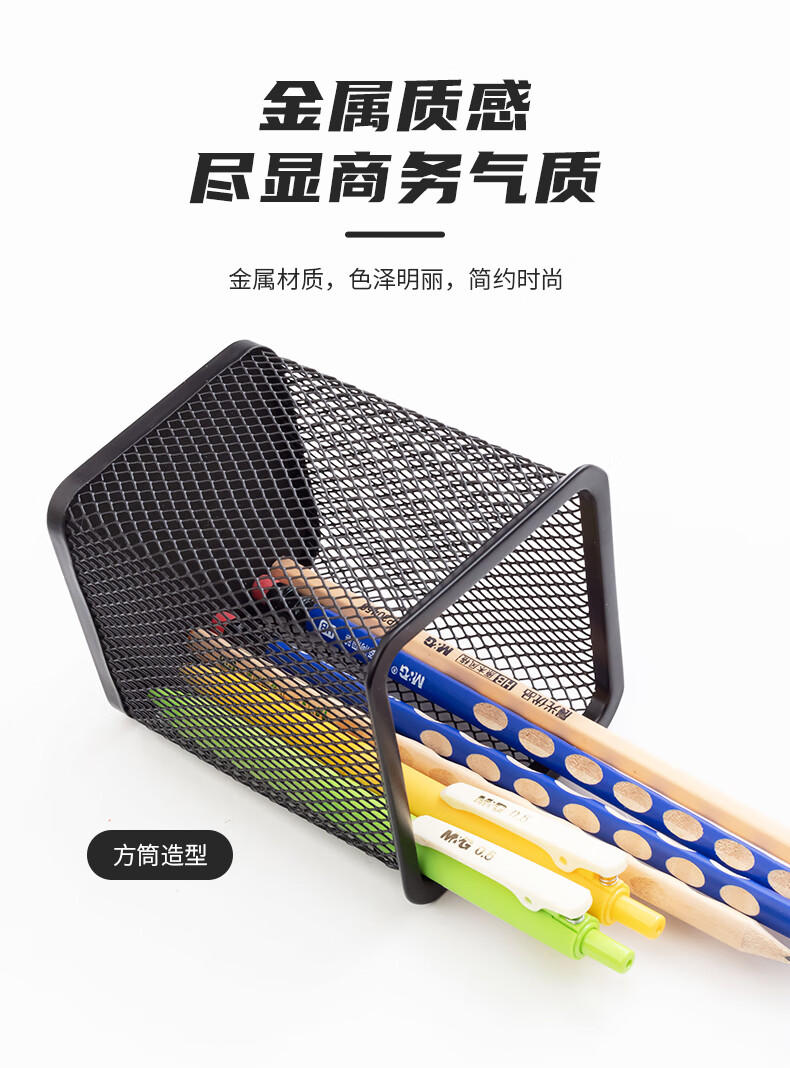 商品名稱:晨光金屬時(shí)尚網(wǎng)格方形筆筒 桌面收納盒 黑色 單個(gè)裝ABT98402