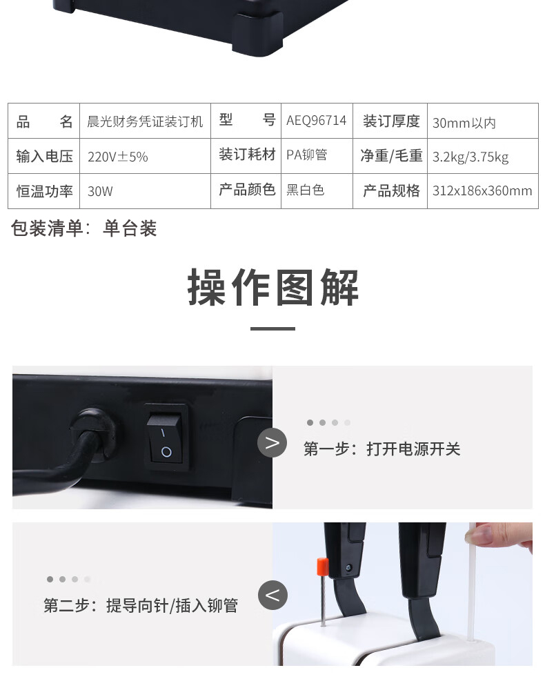 商品名稱:晨光財務(wù)憑證裝訂機 省力型票據(jù)打孔機 膠圈膠裝器 單臺AEQ96714