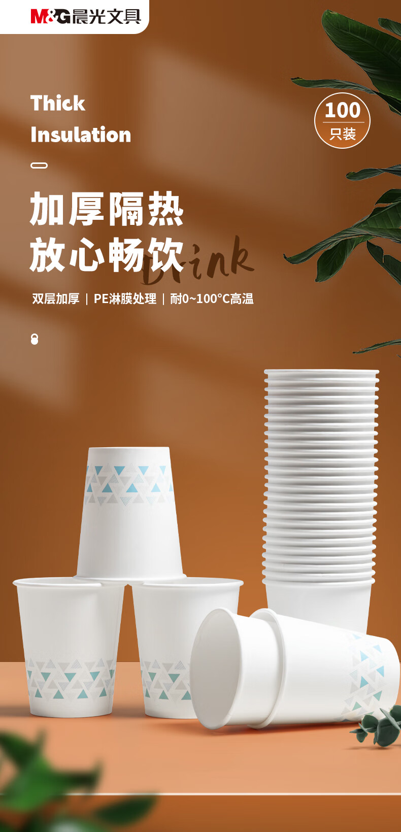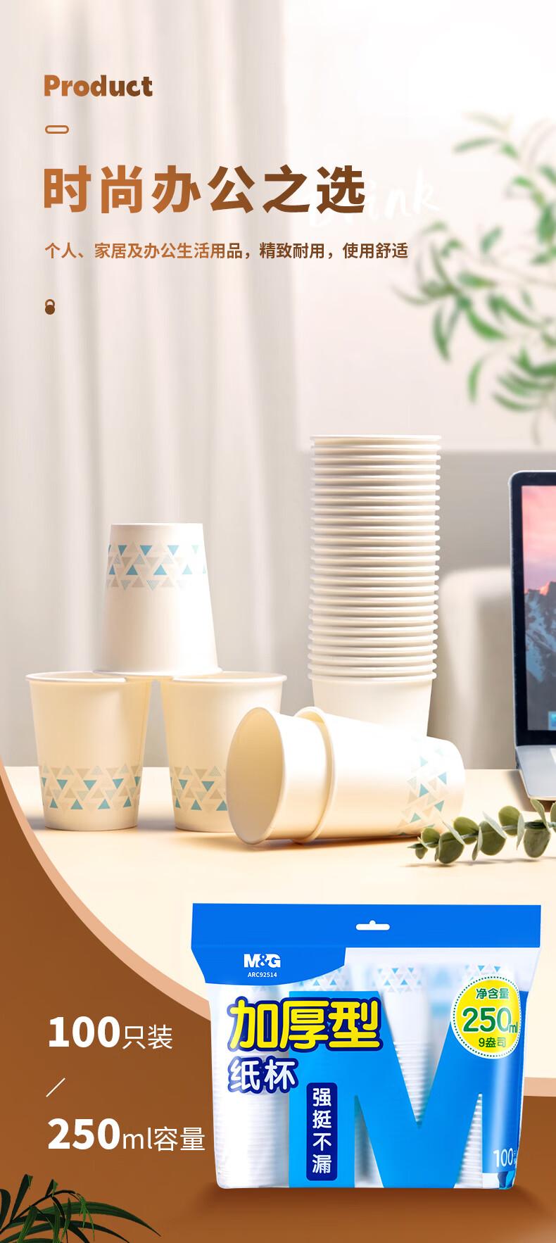 商品名稱:晨光250ml加厚型紙杯 9盎司一次性水杯茶水杯子 100只/袋ARC92514