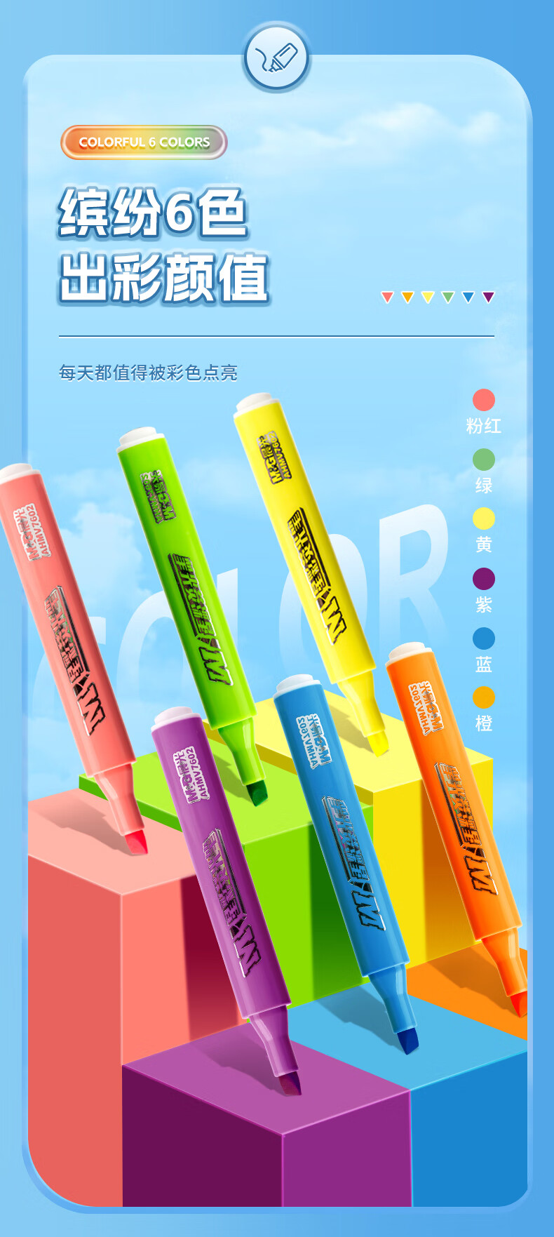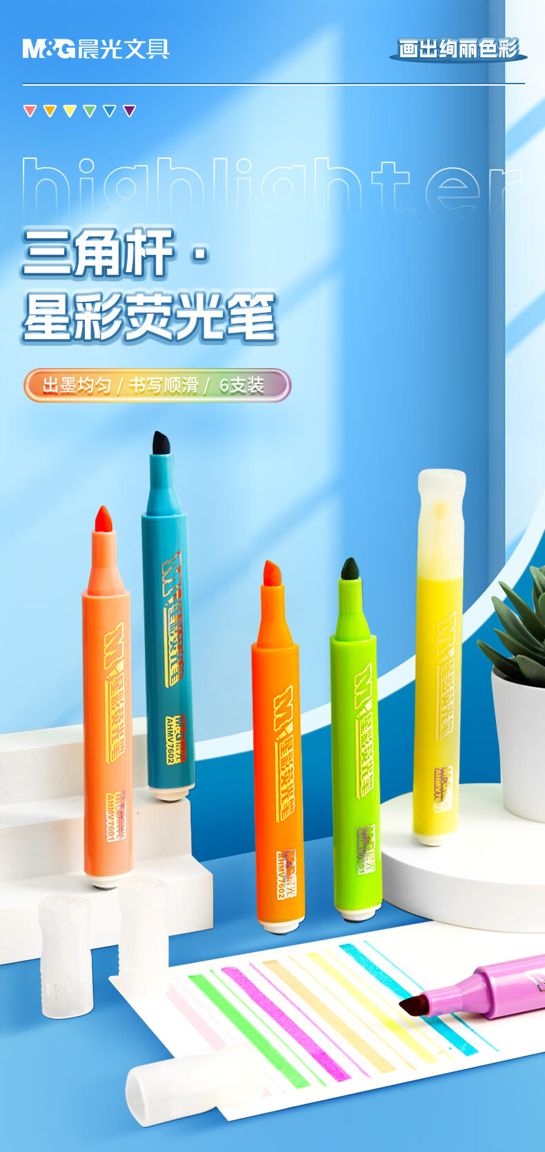 商品名稱:晨光熒光筆 星彩系列單頭水性記號標(biāo)記彩筆 6色/盒AHMV7602