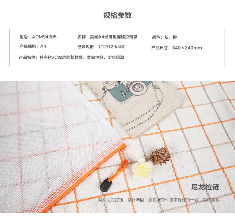 商品名稱:晨光經(jīng)濟(jì)型網(wǎng)格拉鏈袋 A4文件整理收納袋 單個(gè)裝ADM94905
