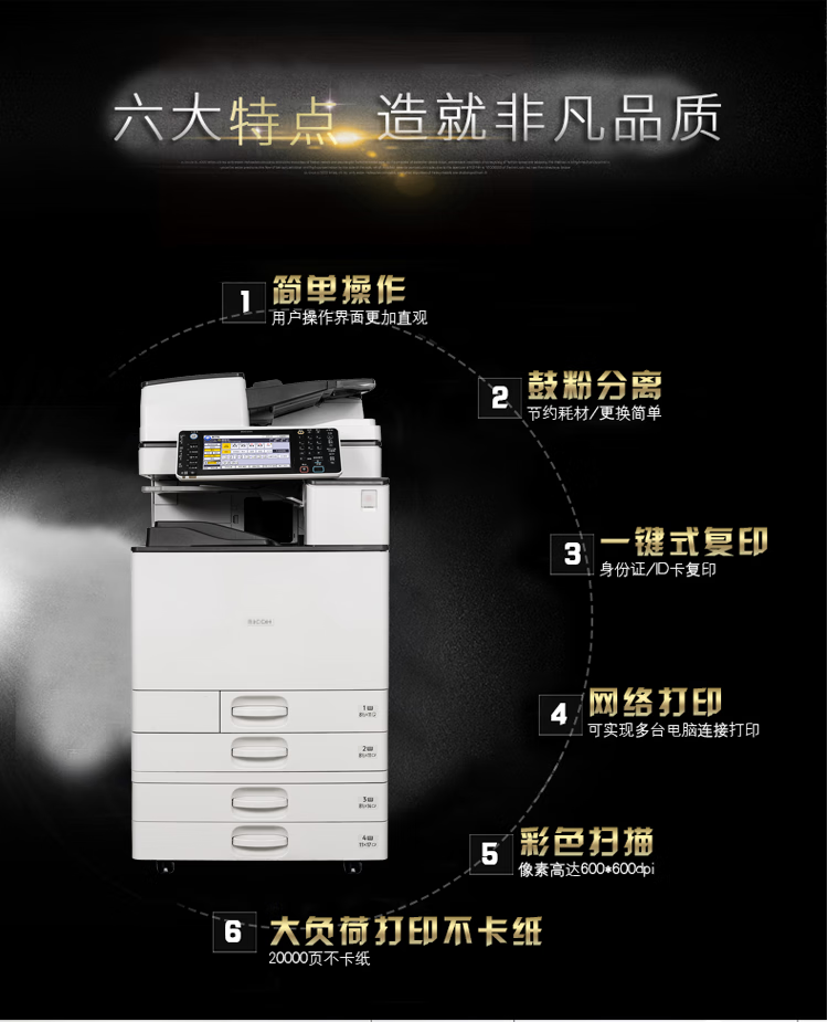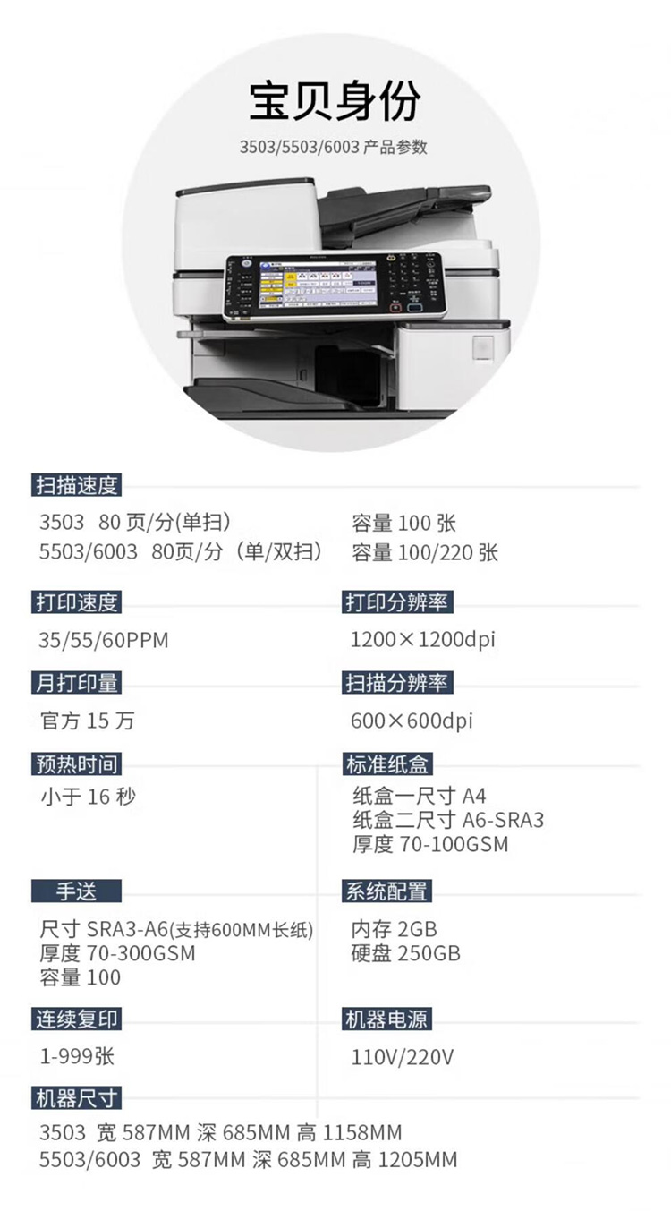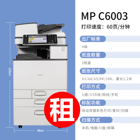 商品名稱:茂名湛江理光MPC6003彩色激光復(fù)印機(jī)租賃 A3大型一體機(jī)出租