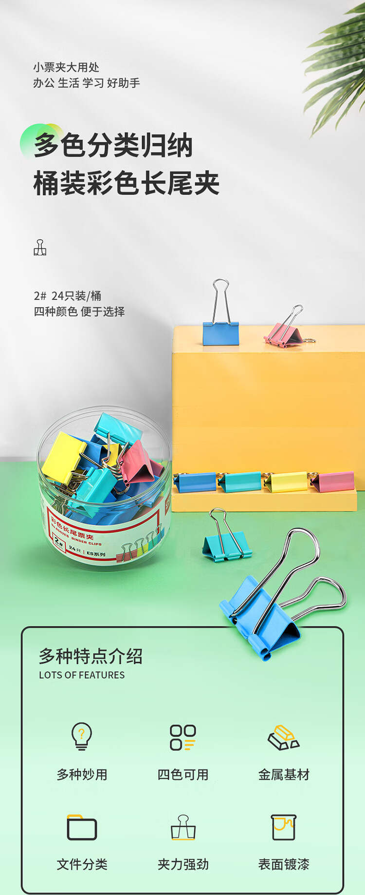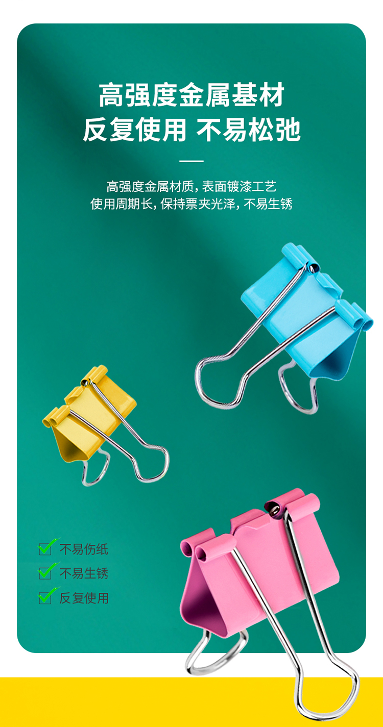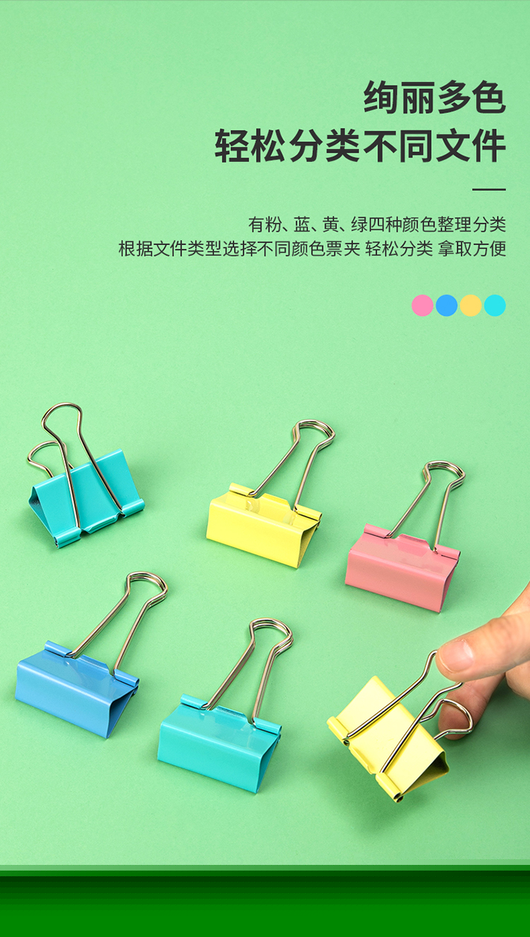 商品名稱:得力8552ES 彩色長尾夾 2#41mm大號金屬票夾燕尾夾票據(jù)文件夾子 辦公用品 24只/筒